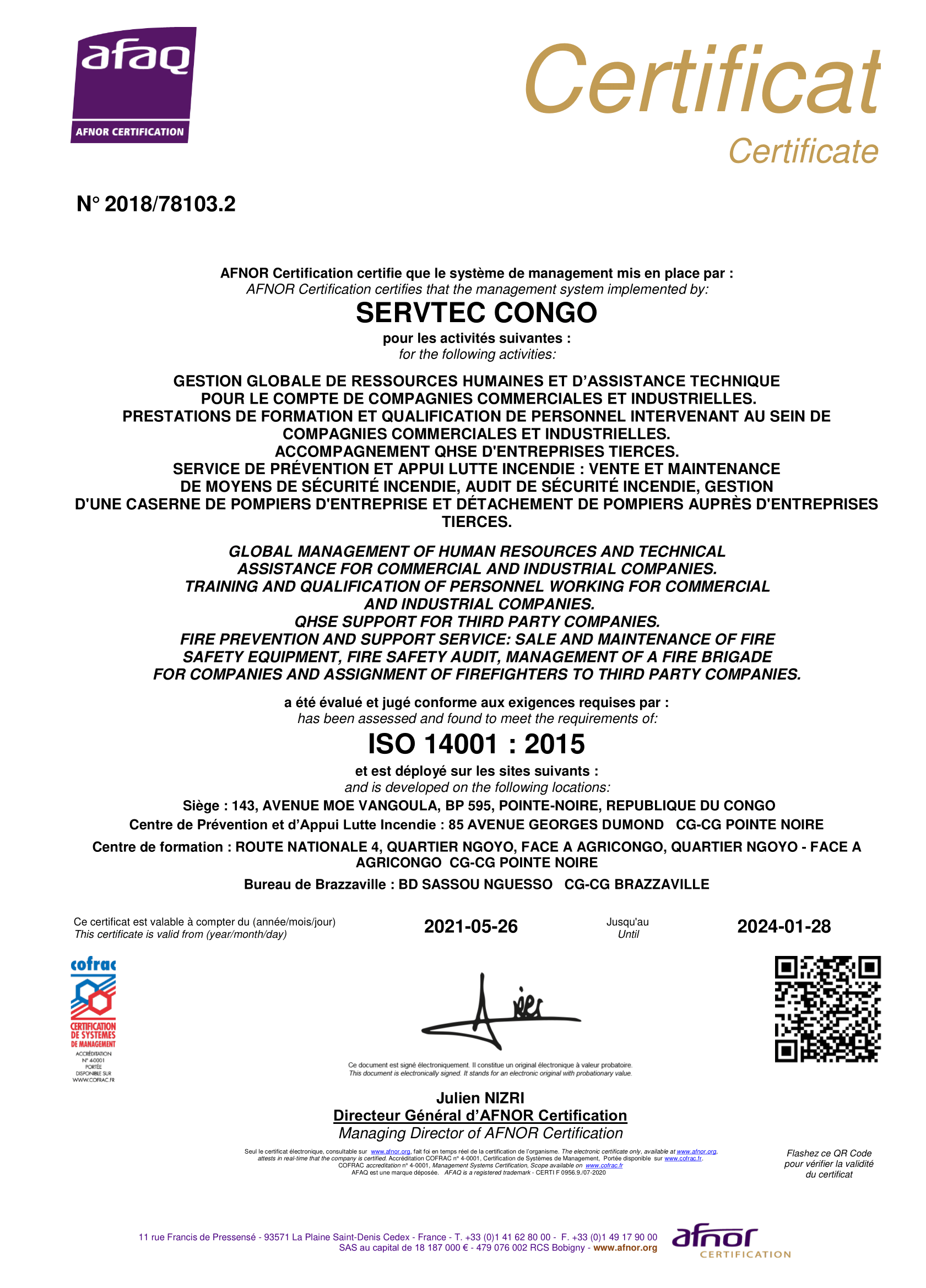 - ISO 14001-2015 Système Management de l’environnement ;