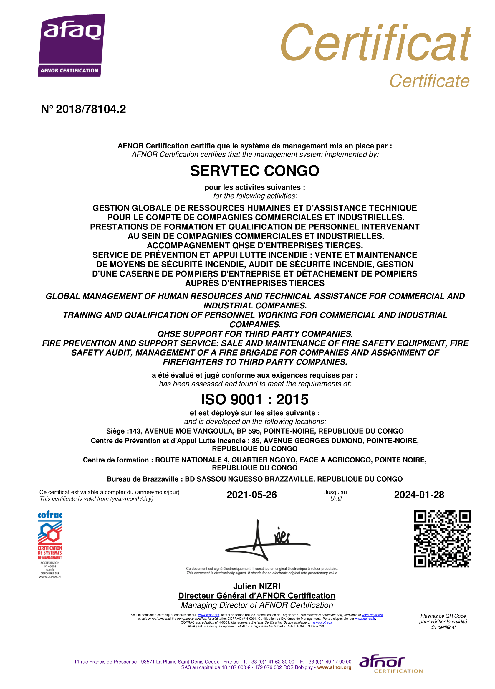 Soucieux d’une amélioration constante et d’une écoute de ses clients, SERVTEC Congo est certifiée depuis 2012 :